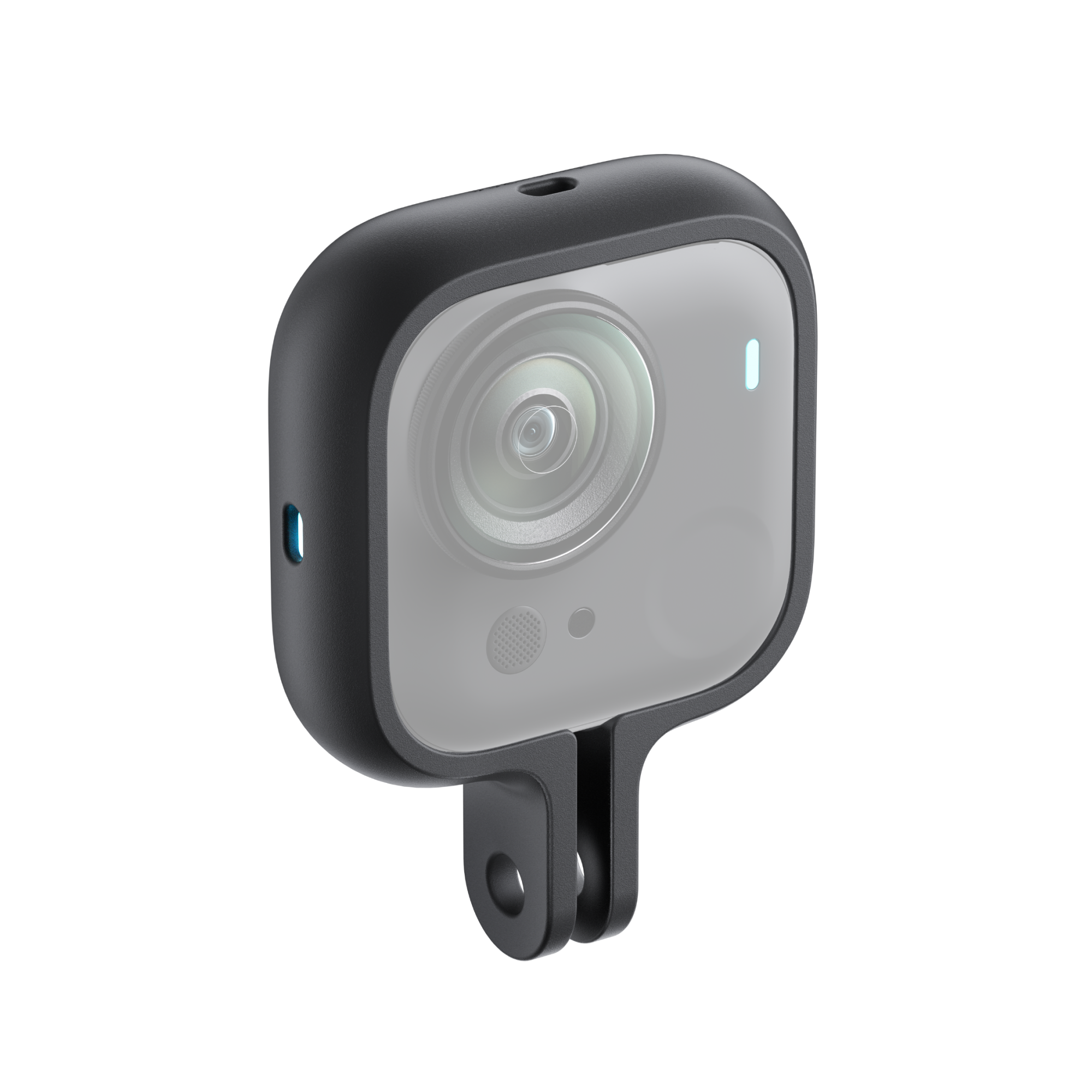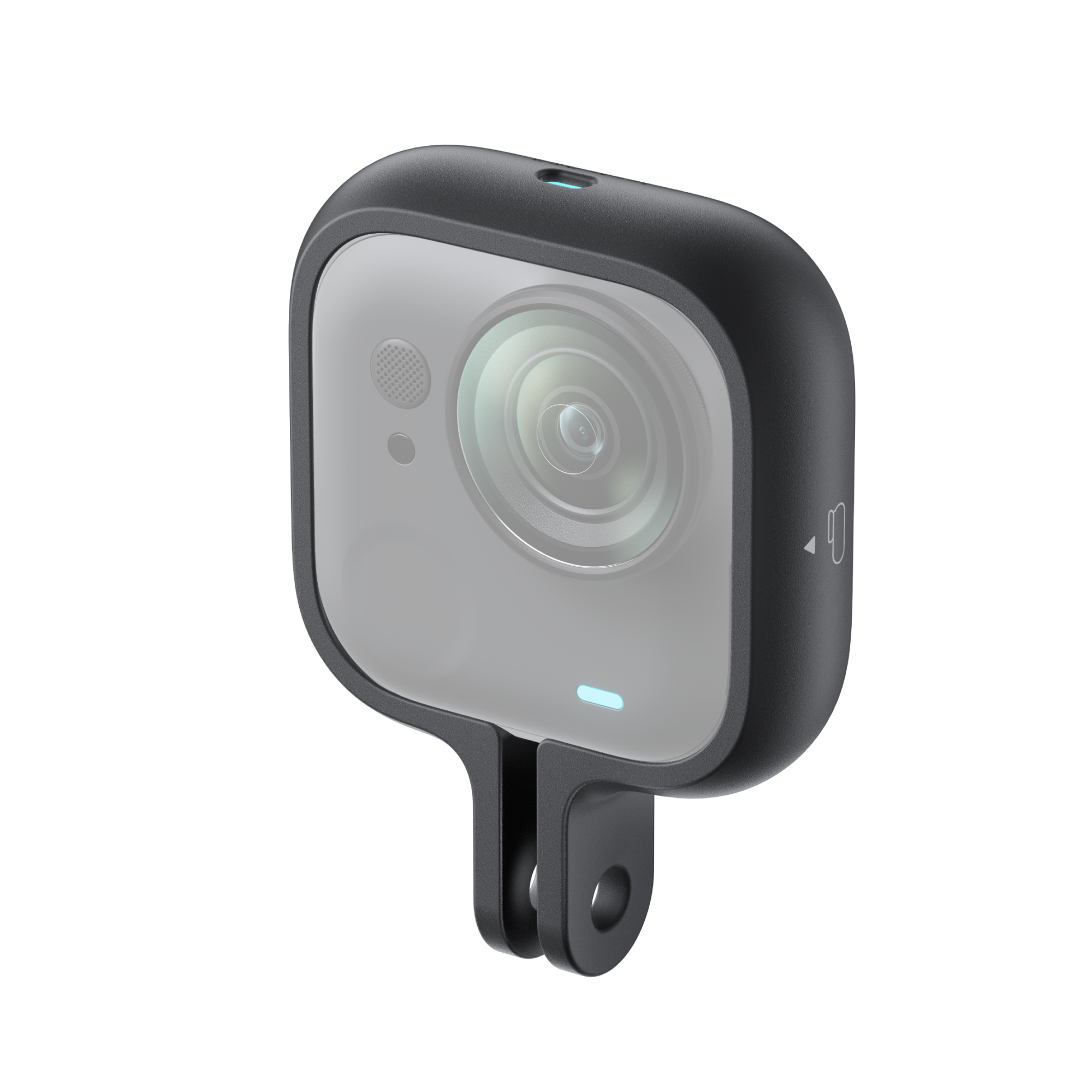 GO Ultra Action Mount este suportul oficial Insta360 destinat camerei GO Ultra în modul Standalone. Proiectat pentru sportivi activi care nu vor să se gândească la siguranța camerei, acest accesoriu încadrează complet camera, o protejează împotriva șocurilor și căderilor, și cântărește sub 8 grame – practic nu îl vei simți pe tot parcursul aventurii.